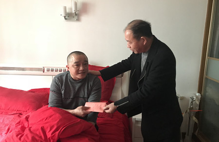 在困難職工張惠良家中,慰問人員緊緊握住張惠良的手,詢問他的身體情況和生活狀況,囑咐他注意身體,同時(shí)為他送上了慰問品和慰問金,祝愿他和家人在新的一年里幸福安康,吉祥如意!