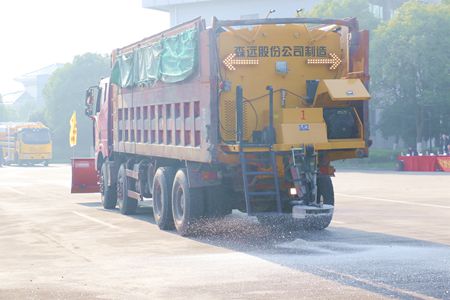 演練活動在高速管理公司所轄杭浦高速管理處開展,20多名演練人員,1臺渦噴6吹雪車、2臺撒鹽機(jī)、2臺雪鏟車、多臺路巡車嚴(yán)陣以待,積極投入到演練活動中來。隨著演練總指揮一聲令下,渦噴6吹雪車轟轟隆隆啟動了,大噴頭里一股熱浪急速涌出。“這輛吹雪車是公司1月份新引進(jìn)除雪設(shè)備,它擁有航空軸流式渦噴6發(fā)動機(jī),最大吹雪速度≥20km/h,一次除雪寬度≥30m,功率大,風(fēng)力強(qiáng)、除雪效力高,能有效地清除車體兩側(cè)積雪和浮冰,是嘉興境內(nèi)首臺吹雪車,是冬季高速公路除雪保暢工作的終極利器”杭浦管理處主任周劍介紹道,“是我們冬季抗冰除雪的‘新底牌’和主力軍。”
