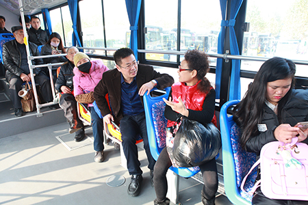 投運的專線公交上,漂亮明亮的內部環境、暖和舒適的座椅,讓乘客們眼前一亮,一些細心的老年乘客還不禁這里摸摸那里試試,不停點贊,“舒適、漂亮、干凈”!