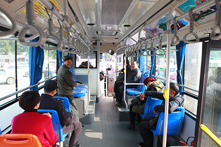 駕駛員胡師傅開心地說:“這個車與以前車輛最大的不同是起步平穩,基本無噪聲,還有許多人性化設計,車內設有8個下車提示按鈕,只要乘客到站前按下紅色按鈕,我這里就有下車請求提示了,再也不怕人多聽不清了”。