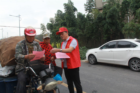 10月13日上午8:30,職能黨支部的25名黨員志愿者準時前往結對共建的王江涇鎮東風村開展主題宣傳活動。活動現場,黨員志愿者們穿著紅馬甲、手捧宣傳資料,在東風村村干部的帶領下,四個黨小組兵分四路,走村入戶奔波在鄉野田間地頭,以拉家常、說交規等形式進行交通安全宣傳。