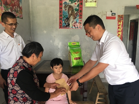 各慰問小組紛紛來到結對家庭,為他們送去大米、食用油等慰問品和慰問金,與他們親切地拉拉家常,細致了解他們身體康復、家庭狀況、生活來源等情況,詳細詢問生活中的困難,鼓勵他們樹立信心,要相信和依靠黨組織,一定能克服一切困難,真心真情的關心問候讓每一個結對貧困家庭都在炎炎夏日里感受到一抹溫情與關懷。