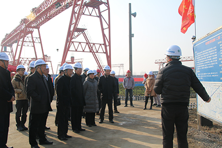 王王輝忠一行首先在TJ01標段預制梁場聽取了項目建設進展簡要介紹,隨后在工地召開工作推進會,聽取了集團公司董事長沈蘭冠對項目建設情況的詳細匯報。王輝忠對項目建設情況表示滿意,對基層奮戰的干部職工表示感謝和慰問。同時,對項目建設過程中存在的困難和問題作了部署,要求省直有關單位要全力配合及時解決,并對項目建設提出要求:一是不斷探索科研創新,用新工藝促進施工質量提升;二是牢固樹立安全、質量、保廉意識,保障項目順利推進;三是在確保質量及安全的前提下,加快施工進度,早日與江蘇段貫通。
