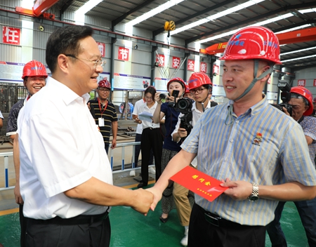 7月30日下午,市委書記張兵深入市區快速路環線工程(一期)土建1標段施工工地,看望慰問堅守在高溫一線的建設工人。市人大常委會副主任朱海平,市委副秘書長、市委辦公室主任趙建明,市總工會黨組書記、常務副主席嚴吉丹,項目推進辦主任畢志強、副主任許海云,集團公司董事長李云鴻、總經理張富標、副總經理李建國等陪同慰問。