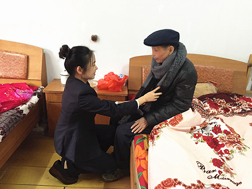 員工們熱情的給老人們戴上溫暖的羊絨圍巾,遞上香甜的銀耳羹,為爺爺奶奶們送上冬日的關懷和溫暖??粗鴨T工們真誠的笑臉,91歲高齡的褚阿根老人愛惜地摸著圍巾感慨:“謝謝你們,每年都來看望我們。這個圍巾又軟又暖,有了它,今年冬天我的脖子就不怕冷了!” 臨走時,員工們不忘叮囑老人們注意保暖,保重身體。老人們拉著大家的手久久不愿撒開。