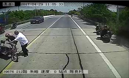 4月29日,新篁加油站路段發生了感人一幕,212路公交車駕駛員朱皓,救起了被三輪車壓住的菜農老太,并攙扶到蔭涼處。