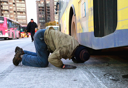 強化措施,積極迎戰。1月23日早晨和夜間的兩場大雪在給嘉興市民帶來新年驚喜的同時也給市區道路通行帶來不小壓力。特殊天氣下,公交公司廣大干部職工把市民出行保暢放在首位:領導干部靠前指揮,主要部門和各分公司均安排24小時值班人員,提前給車輛加注防凍液,堅持夜間每兩個小時熱車一次,安排路遠的駕駛員就近入住賓館,保障第二天營運;凌晨三點,應急分隊提前到各線路途經路段、橋面察看情況,早班車安排駕齡長、技術好的老駕駛員探路,準確掌握沿線路況,根據實際情況靈活調度;針對大雪過后各公交場站、市區部分道路和公交站臺路面結冰嚴重的情況,公司應急分隊在結冰嚴重橋面和公交站臺撒鹽融雪、鋪設防滑草墊,為公交車、社會車輛通行及市民出行增添一份安全保障;應急車輛和維修人員奮戰在搶修一線,全力做好維修保障工作。