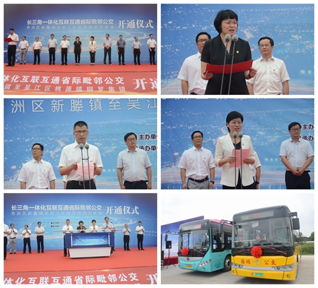 6月12日,嘉興市本級首條省際公交線路(秀洲區新塍鎮至吳江區桃源鎮銅羅集鎮)正式開通。秀洲區委副書記、區長吳燕,集團公司黨委書記、董事長李云鴻,吳江區委副書記王燕紅,市交通運輸局副局長王立方,集團公司副總經理花屹,市運管局副局長傅學練等出席開通儀式。