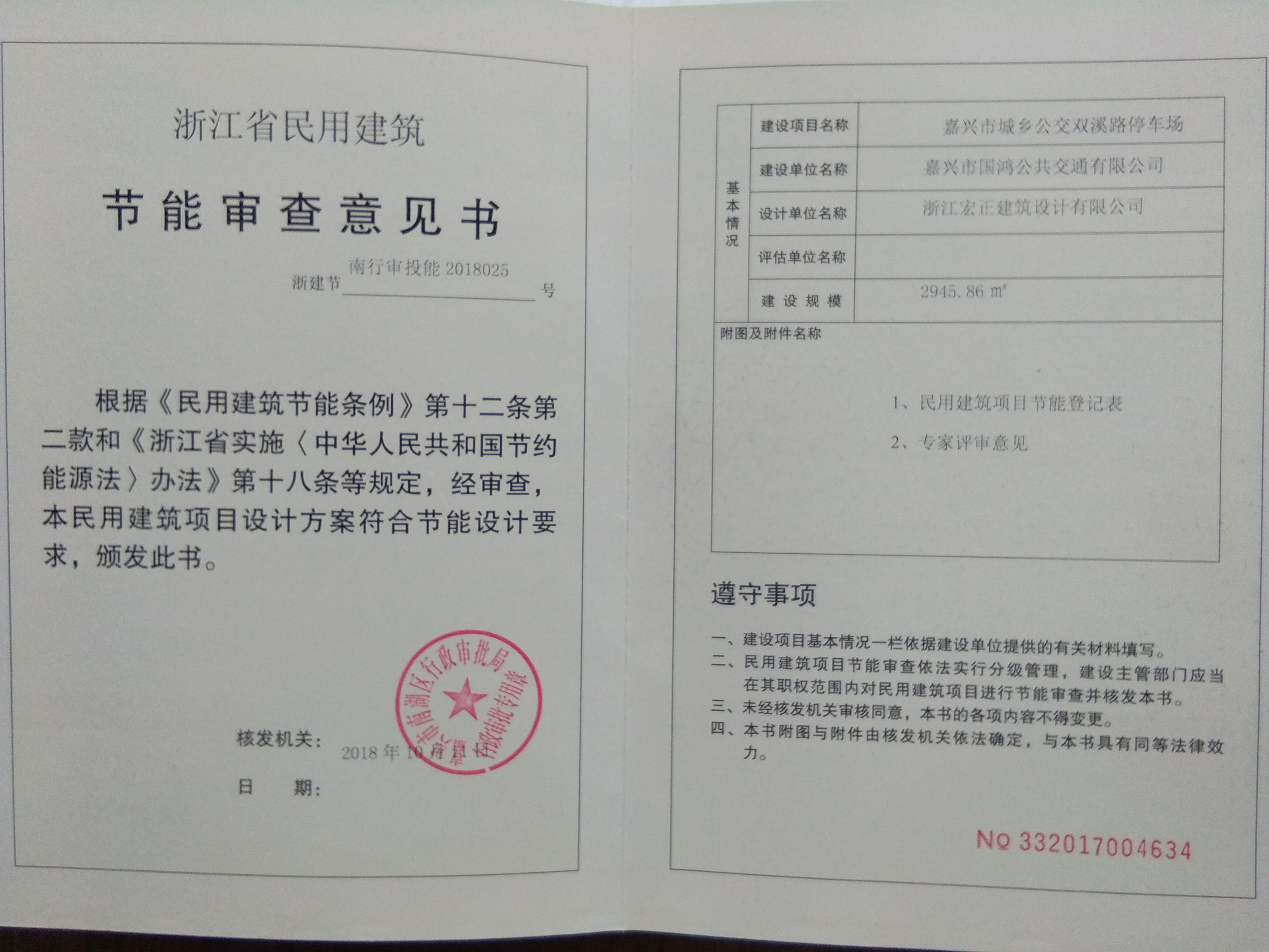 嘉興市城鄉公交雙溪路停車場項目節能審查意見書
