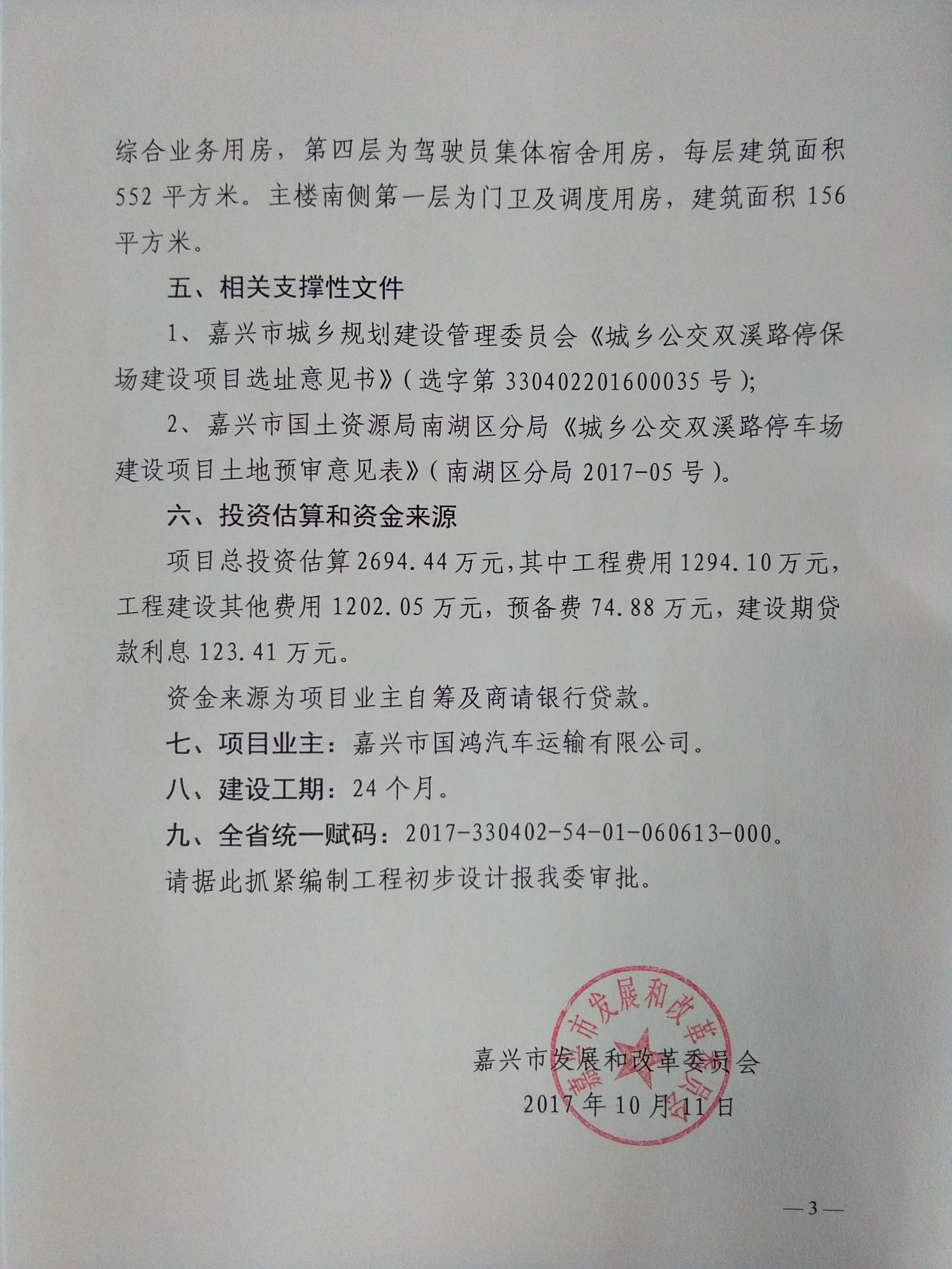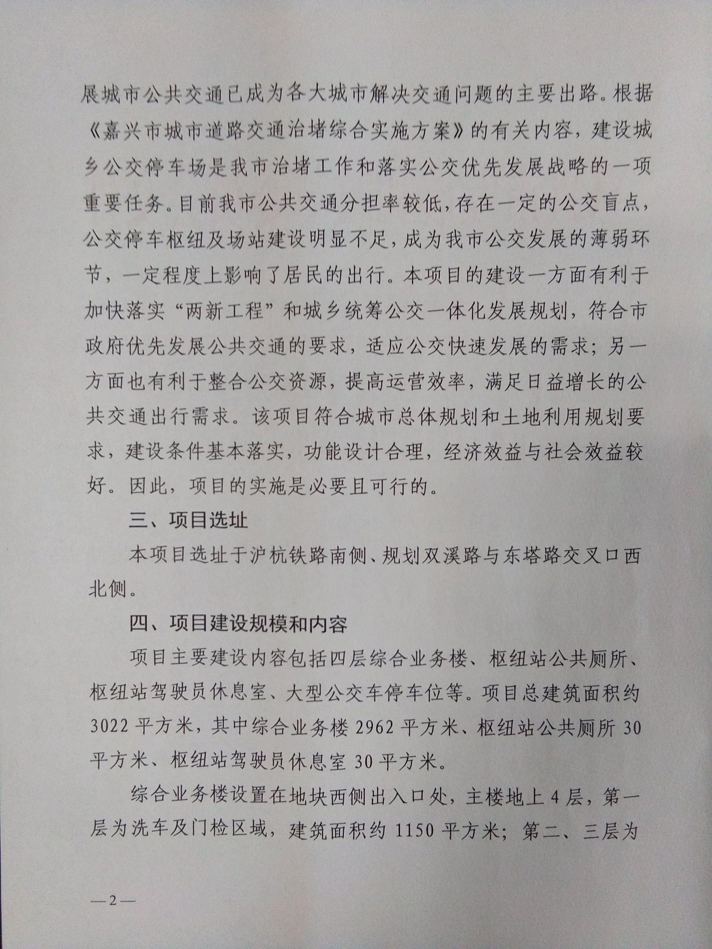 嘉興市城鄉公交雙溪路停車場工程可行性研究報告的批復