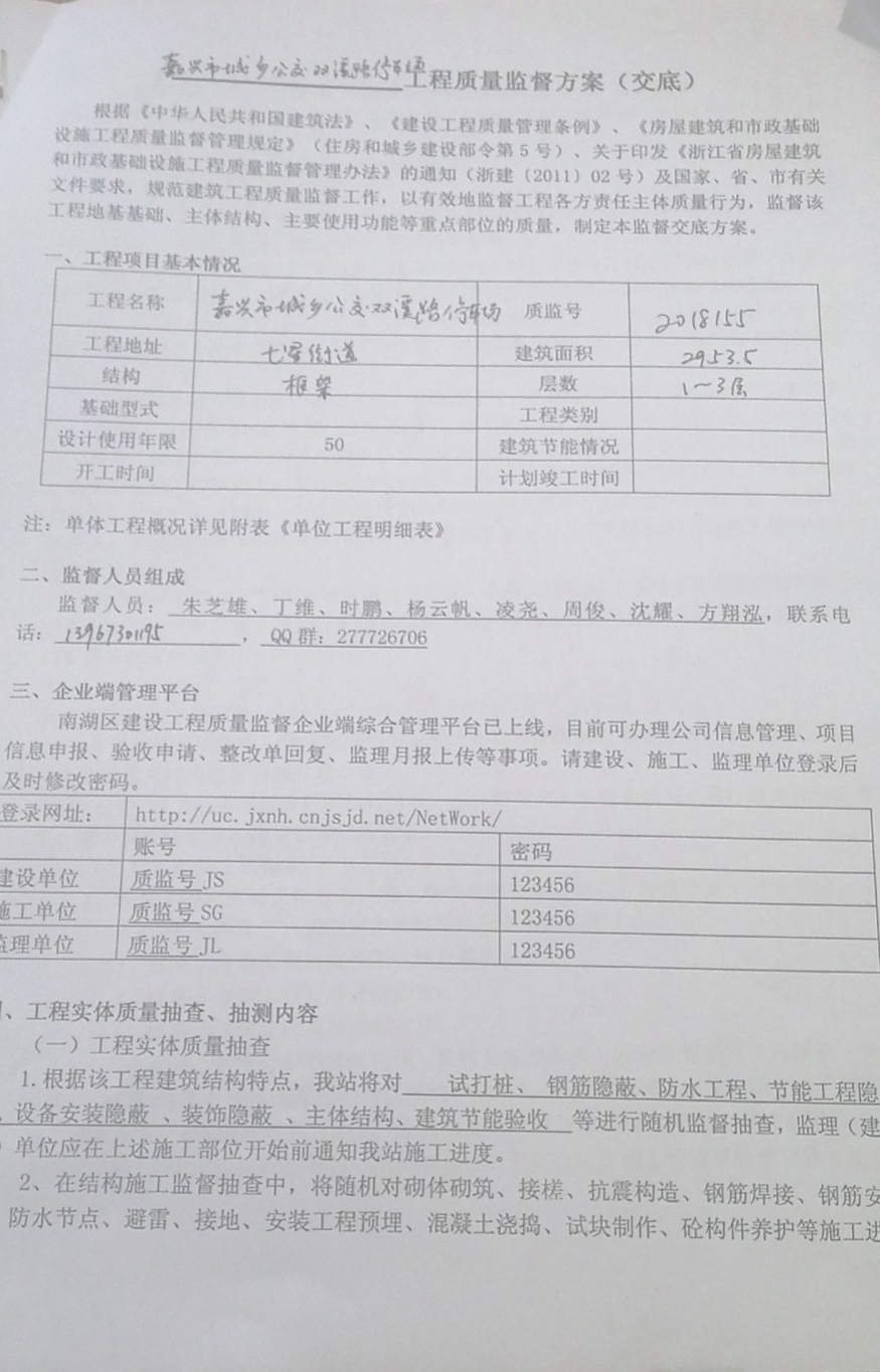 嘉興市城鄉公交雙溪路停車場項目工程質量監督方案