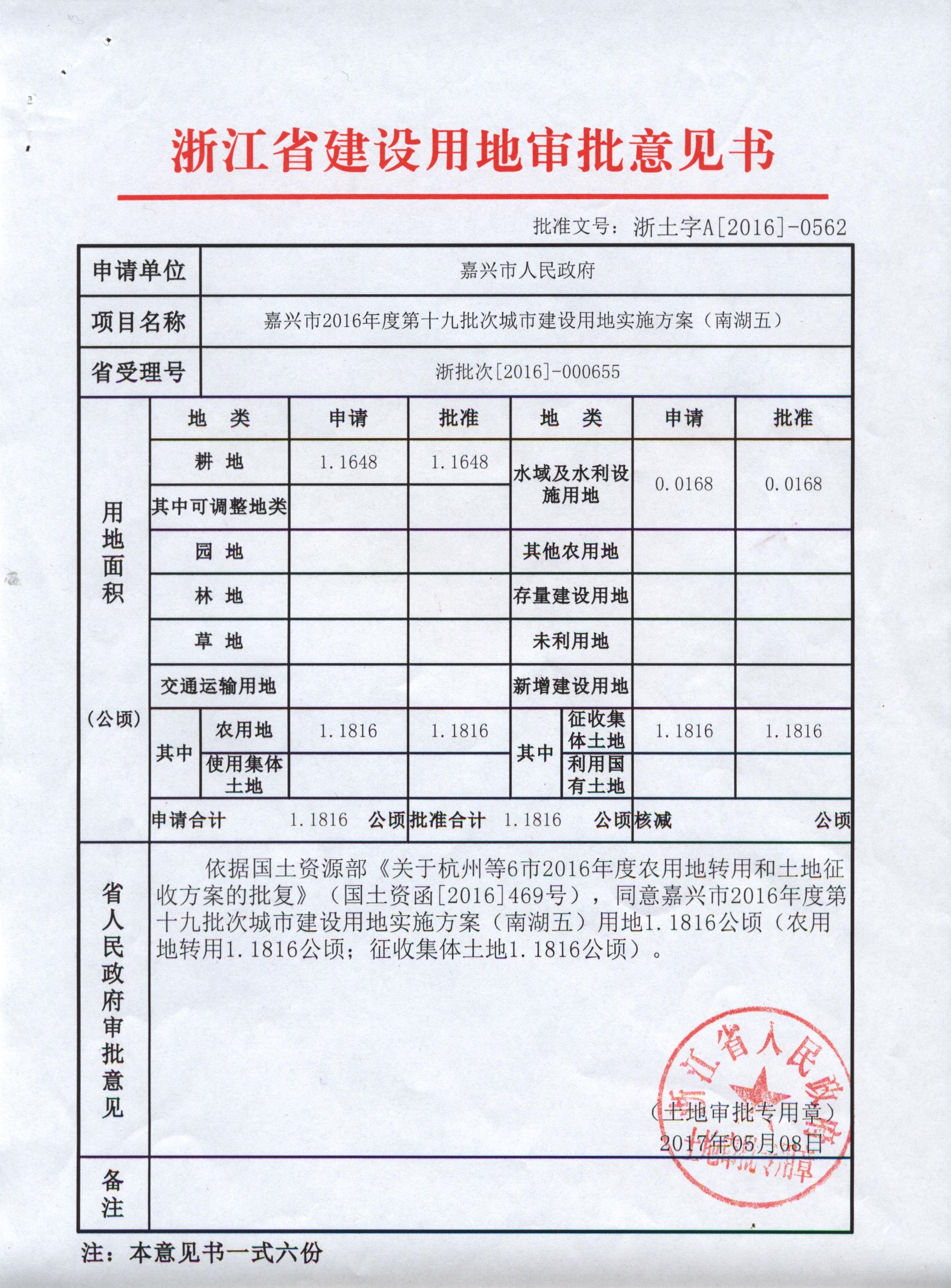 嘉興市城鄉(xiāng)公交雙溪路停保場(chǎng)項(xiàng)目建設(shè)用地審批意見(jiàn)